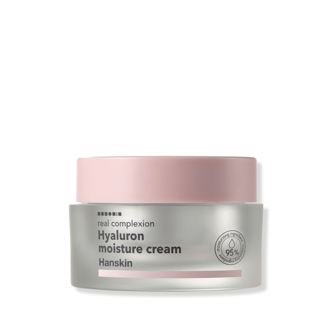 Το πραγματικό μυστικό για μια λάμψη, HANSKIN Real Complexion Hyaluron Moisture Cream . Αυτή η ελαφριά, έντονα ενυδατική κρέμα, εμπλουτισμένη με υαλουρονικό οξύ, προσφέρει μια γεμάτη, λαμπερή επιδερμίδα χωρίς να κολλάει. Ιδανικό για ξηρό και αφυδατωμένο δέρμα.