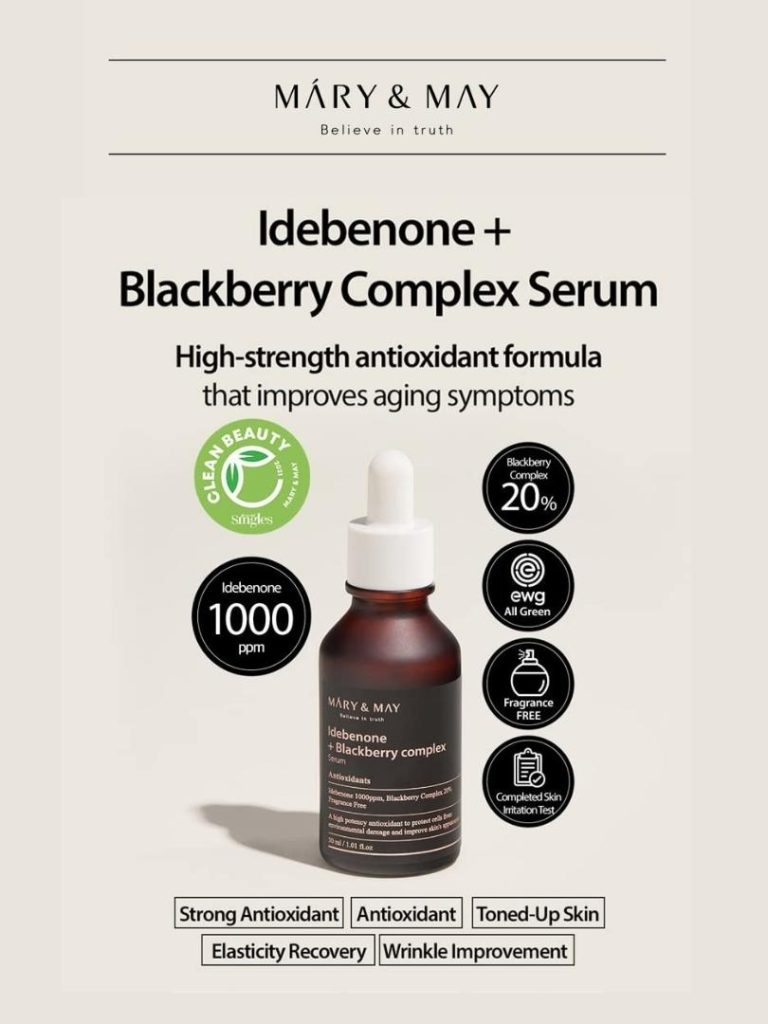 Ο ορός Mary & May Idebenone + Blackberry Complex Serum είναι ένας ορός αναζωογόνησης του δέρματος με αντιοξειδωτικές και αντιγηραντικές ιδιότητες.
