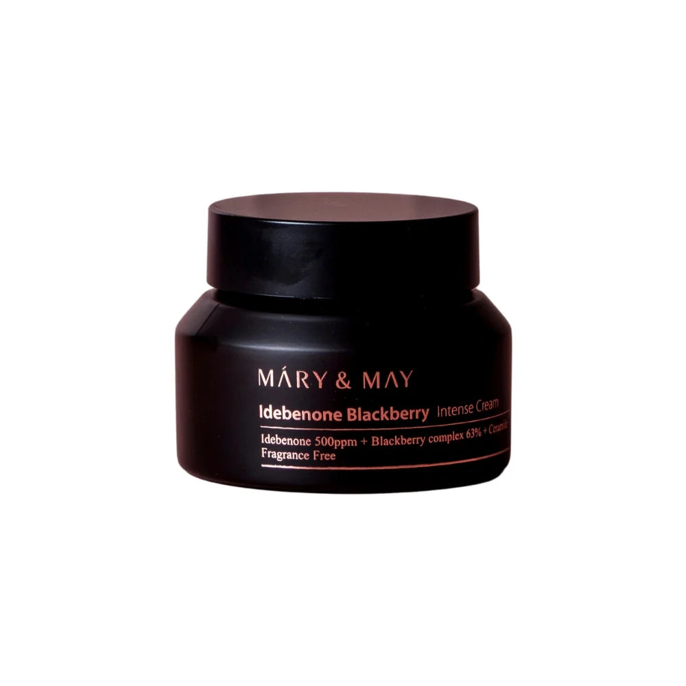 Η Mary & May Idebenone & Blackberry Intense Cream είναι μια ενυδατική κρέμα που περιέχει 500ppm indebenone και 63% εκχύλισμα συμπλέγματος βατόμουρου, μια φόρμουλα με ισχυρά αντιοξειδωτικά για σύσφιξη και έντονη ενυδάτωση του δέρματος. Έχει μεταξένια υφή και είναι ενυδατική χωρίς να είναι βαριά ή λιπαρή.